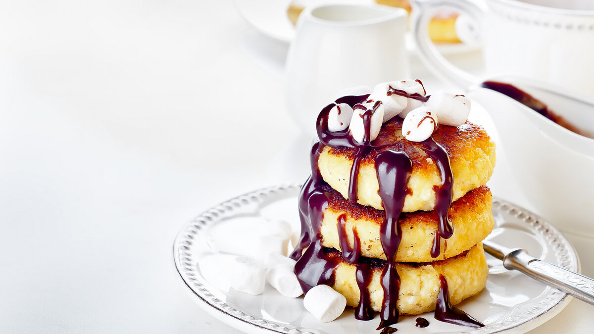 5.Обжариваем сырники с двух сторон, и когда вторая сторона слегка подрумянилась (можно аккуратно проверить лопаточкой) выкладываем дольку шоколада на каждый сырник. Накрываем сырники крышкой, держим на низком огне минуту-две. Выключаем огонь и держим крышку закрытой ещё пару минут, чтобы шоколад полностью растаял.
