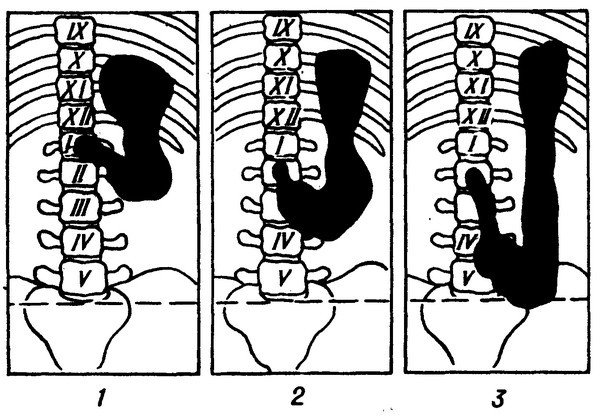 Гастроптоз делится на 3 степени: