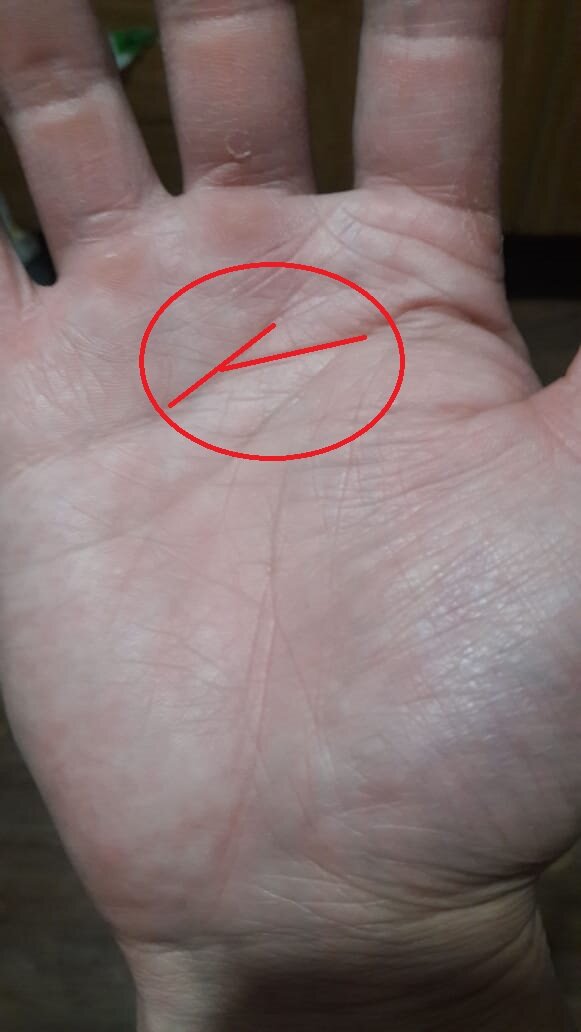 Этот негативный знак, формируется линией, которая опускается с линии сердца на линию головы.