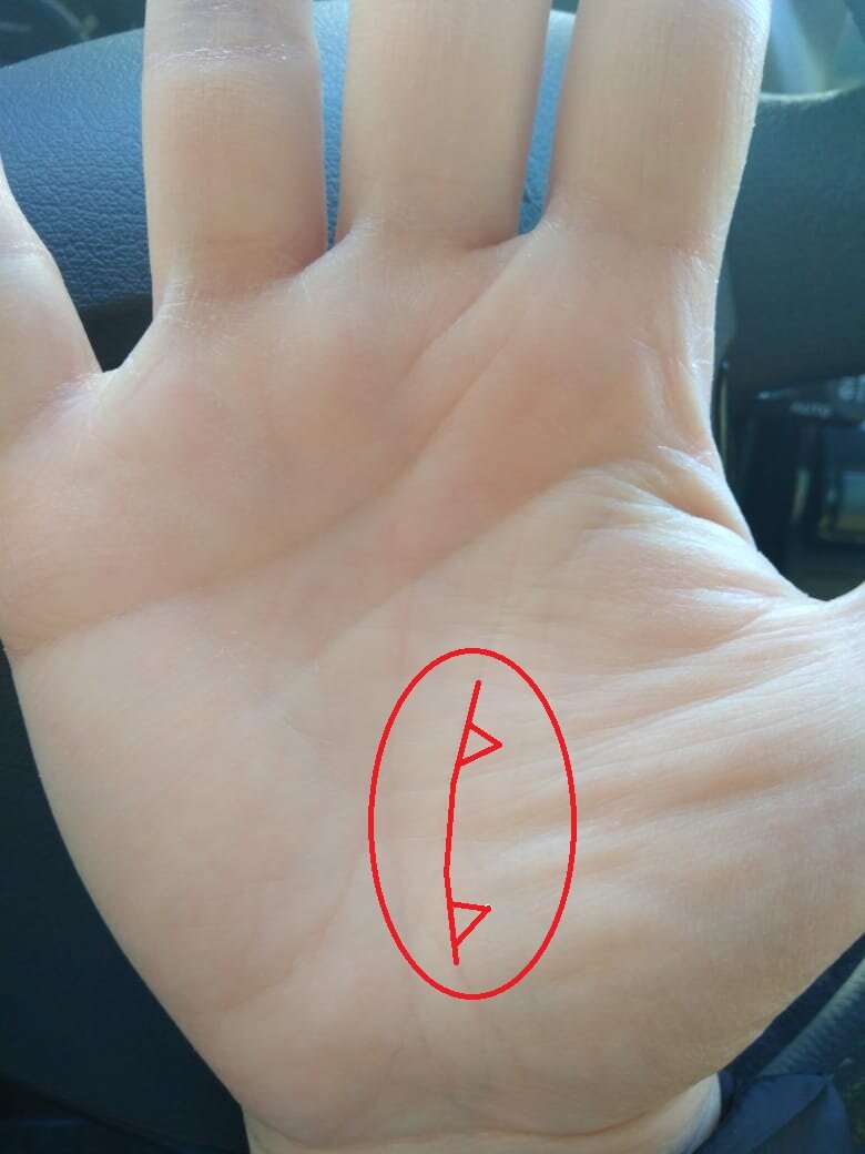 Треугольники находящиеся на линии жизни, направленные на холм Венеры являются положительным знаком.