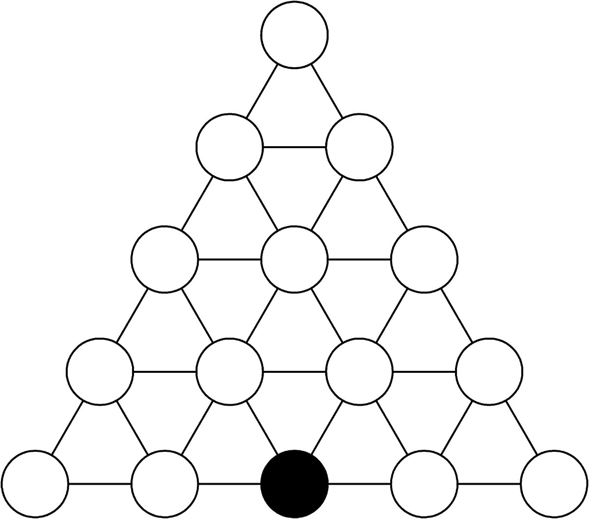 Приветствую на канале о полезных развлечениях! Представляю вариант головоломки из серии солитёр, в виде треугольного игрового поля. На поле расположены 15 кружков, соединенных линиями. Для игры понадобятся 14 любых фишек (камешки, пуговицы, монетки и т.д.) В начальной позиции фишки размещаются в белых кружках. Черный кружок остается пустым. Цель головоломки, при помощи последовательных ходов снять с игрового поля все фишки, кроме одной, последней, которая в идеале должна оказаться в черном кружке. Ходы осуществляются любой фишкой путем перепрыгивания через соседнюю фишку на свободный за ней кружок. Та фишка, через которую перепрыгнули, выходит из игры. Задание нужно выполнить за наименьшее число ходов. Читайте так же про классический вариант: Головоломка "Солитер" + схемы, распечатай и играй Благодарю за проявленный интерес. Отдельное спасибо за "лайки", "репосты" и комментарии. Подписывайтесь на канал и не пропустите новые выпуски!