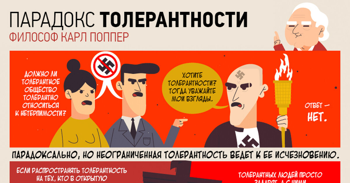 Он говорил, что безграничная толерантность приведёт к исчезновению толерантности, поскольку терпимость к не толерантности приводит к повсеместному распространению последней.