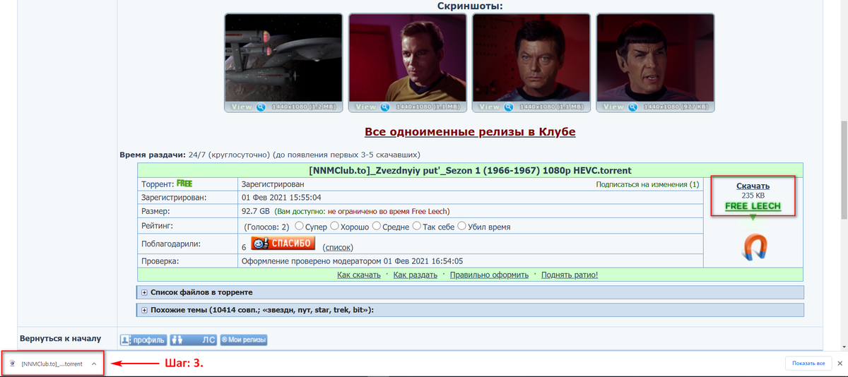 Шаг 3: Найдите на торрент -трекере с помощью строки поиска фильм или сериал, перейдите на его страницу, нажмите «Скачать».
