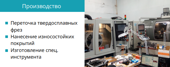 (Все основные размеры поддерживаем в наличии на складе, делаем повторную переточку с нанесением покрытий всех стандартных и специальных фрез)!