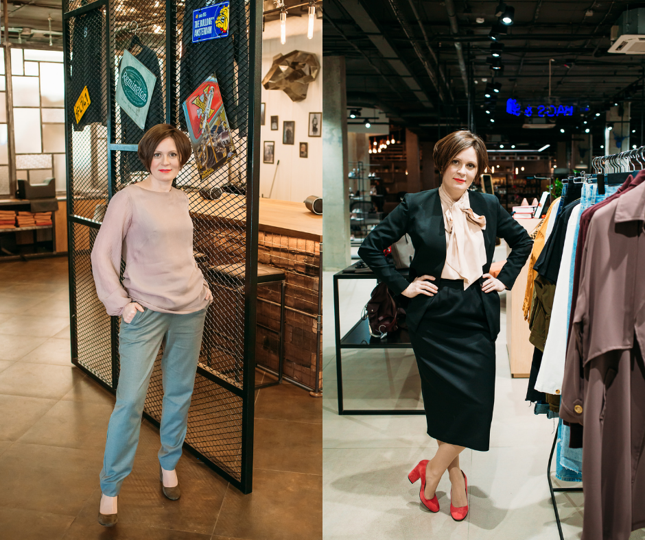 Мы с Леной лишь бегло просмотрели гардероб, зато подробно обсудили и проанализировали какой Лена хочет быть, что она хочет рассказывать о себе окружающим людям с помощью одежды. Продумали какими стильными приемами она будет пользоваться для каждой своей «реплики» миру.
