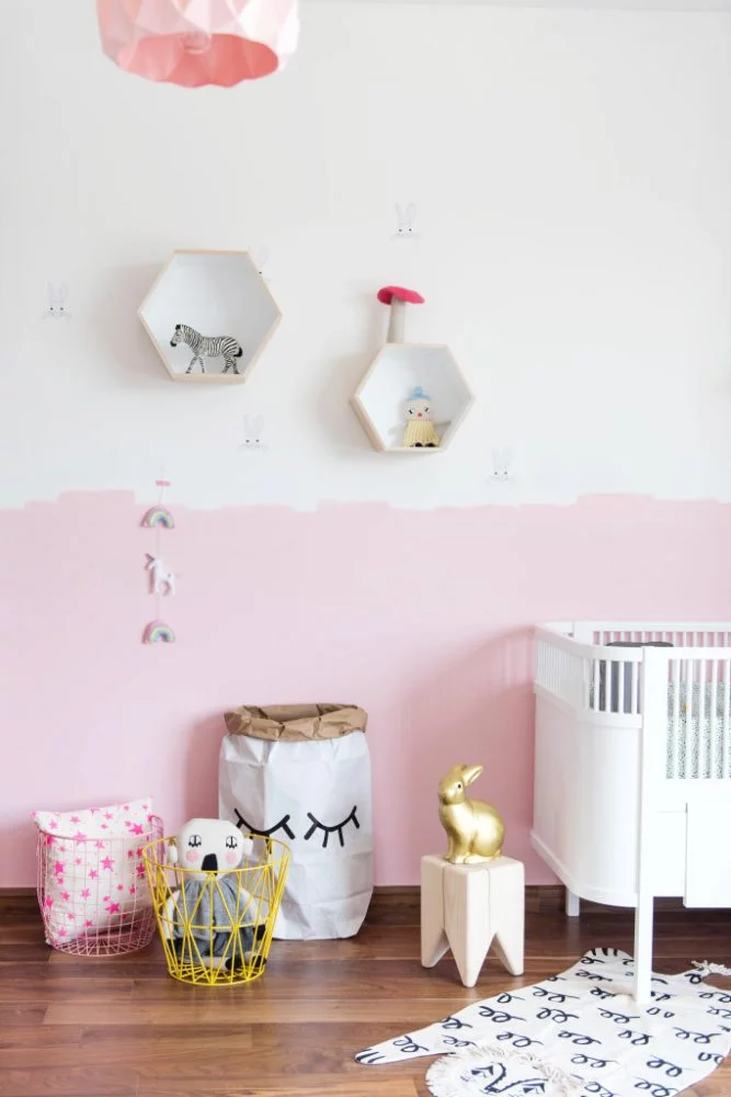 Компоновка двух цветов уже давно известна и широко применяется, когда верх стен делается более светлым цветом, а низ контрастным. Но что если немного покреативить и четкую ровную линию стыка сделать хаотичными мазками? На наш взгляд, весьма интересная идея, которая освежает пространство.