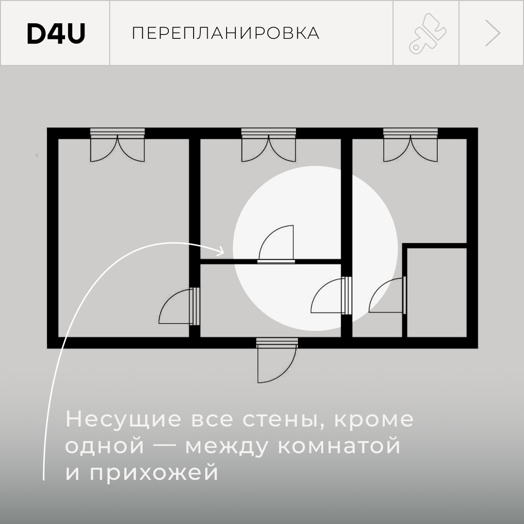 Чтобы понять, какую стену в квартире можно сносить, а какую нет, придётся найти техпаспорт с планом или обратиться в БТИ. Толстая стенка на плане — несущая, а тонкая — нет. В карусели можно посмотреть примеры схем с несущими и ненесущими стенами.