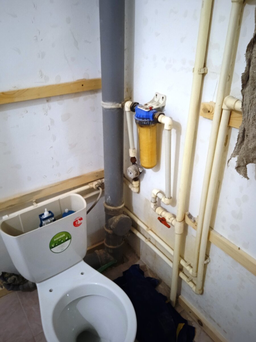 Купили новую мойку со шкафчиком, унитаз и полотенце сушитель.
