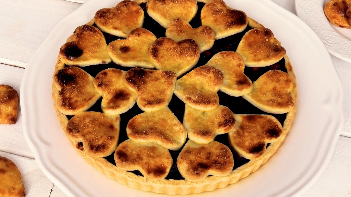 Праздничный пирог *Сердечки* с начинкой из вишни🍒 и яблок🍏
