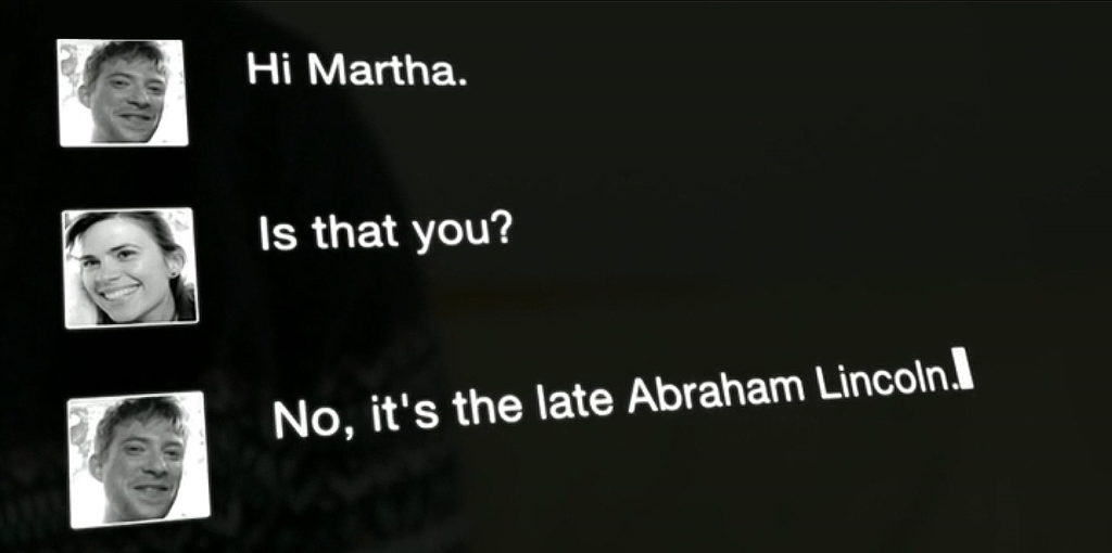 Британский сериал «Чёрное зеркало» справедливо относят к жанру антиутопии — он предупреждает о том, как технологии могут безвозвратно изменить нашу жизнь. В первом эпизоде второго сезона под названием «Я скоро вернусь» (Be Right Back), впервые показанном 1 февраля 2013 года, рассказывается о молодой паре, в жизнь которой приходит трагедия. Эш гибнет в автокатастрофе, и его вдове Марте приходится учиться жить без любимого человека. Однажды она узнаёт о новейшей технологии, в которой искусственный интеллект генерирует «цифровое я» человека на основе его поведения в соцсетях. Марта начинает общаться с новым «Эшем» через личные сообщения, а затем загружает в базу данных фотографии и видео с ним, что позволяет ей общаться с ботом в голосовом режиме. Дальше происходят совсем уж трудно представимые в наши времена вещи, такие как появление физической модели Эша — точной его копии, за исключением мелких деталей. Нас в данном случае интересует лишь виртуальная, неосязаемая сторона человеческого образа, а именно — чат-бот.