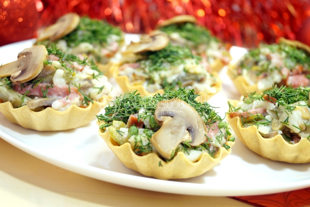 Тарталетки с грибным салатом «Праздничные» готовы. Можно подавать к праздничному столу.