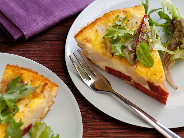Переверните на разделочную доску и дайте остыть до комнатной температуры. Перемешайте молодую зелень с оставшимся маслом и лимонным соком, посолите и поперчите. Выложите зелень на тортилью, нарежьте ее треугольниками и подавайте.