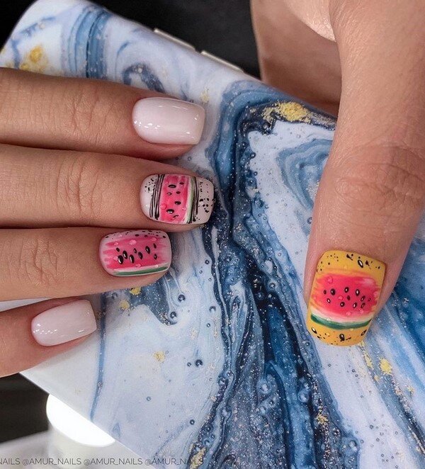 Простые мазки на ногтях в ярком дизайне будут отличным решением для стильного летнего либо весеннего нейл-арт дизайна на сезон 2021-2022. Разноцветные мазки в качестве декора, яркое покрытие и акцент мазками, сочетание мазков с другими стилями нейл-арта, как например, «брызги краской» либо дотс, а также матовый или глянцевый финиш позволят вдоволь поэкспериментировать и получить самый крутой яркий маникюр в модном стиле с мазками кистью.