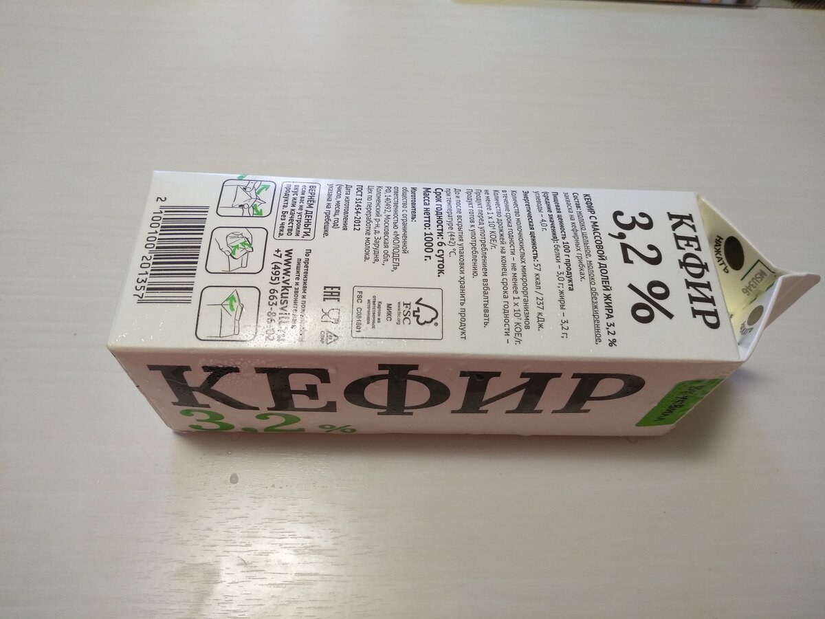 Берём пакет кефира жирностью не менее 3,2 % и кладём в морозилку на сутки.