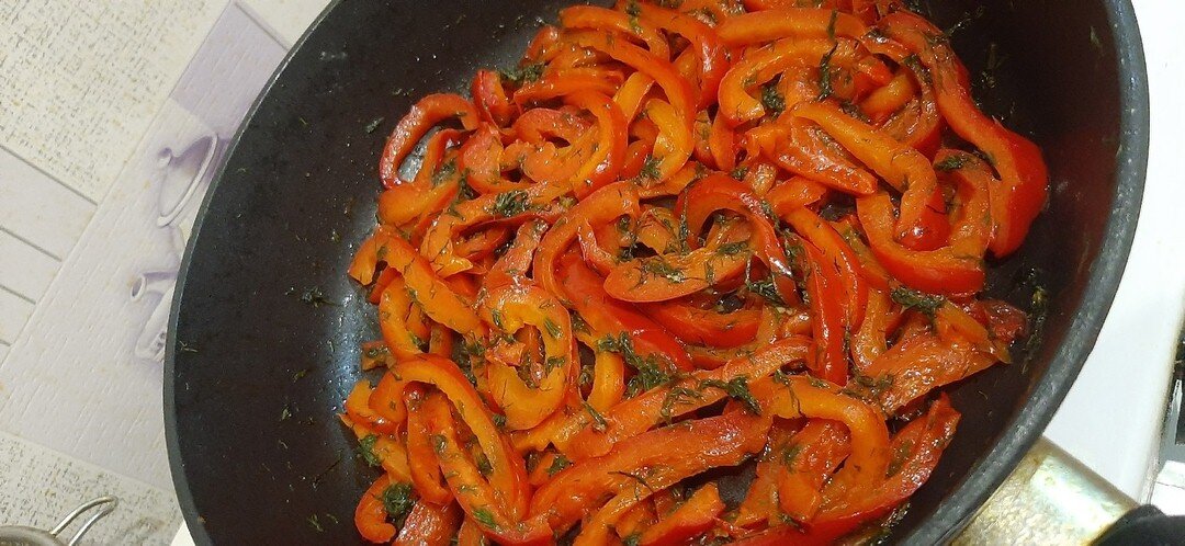 Всем привет! Сегодня приготовил очень простое блюдо из перца и укропа. Это скорей всего даже и не блюдо а просто добавка к гарниру. Отлично подходит когда не можешь есть сухую гречку, макароны и т. д. В холодильнике завалялось несколько перцев, вот и решил пустить их в дело.