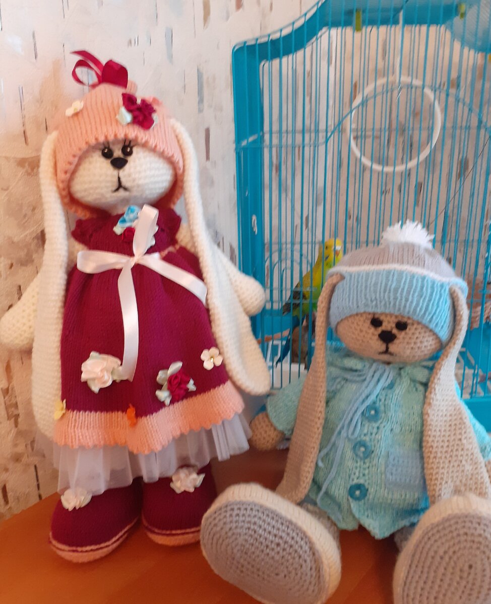 Я даже не представляла, что "мелкая моторика для рук" или проще - вязание, вязание детских игрушек, так увлечет. Поиск ниток, глазок, носиков, волос, наполнителя и кто знает чего еще. Поиск схем вязания, часы пересмотров видео уроков занимает все свободное время. Но результат того стоит. Мягкие, уютные, не похожие друг на друга, уникальные вязанные игрушки. Остановиться невозможно. Вязанный заяц в стиле тильда, потом кошечка, потом кукла, потом медведь, ежик, домовой...