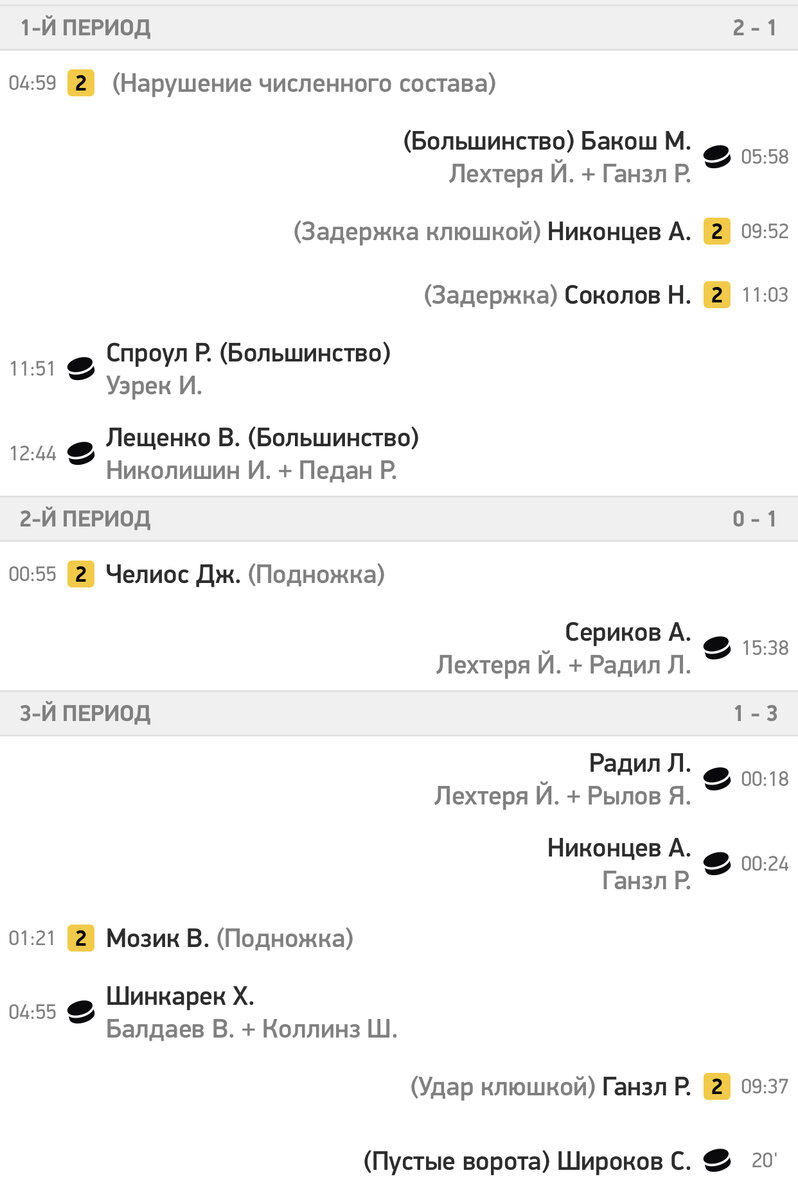 На 6-й минуте Мартин Бакош вывел москвичей вперёд. В середине периода с разницей в 53 секунды забили Райан Спроул и Вячеслав Лещенко. На 36-й минуте Артём Сериков сравнял счёт. На