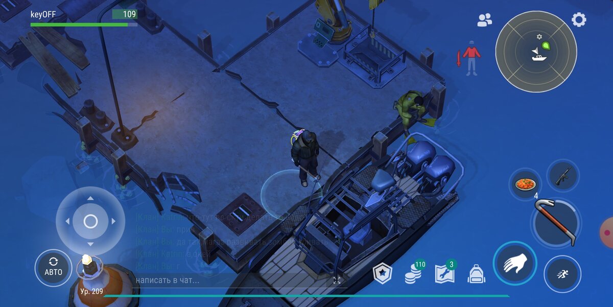 После того как собрали катер, можно выдвигаться на базу Генезис. Катер будет уже в порту у того причала, где кран поднимает ящик и работает он на том же топливе, что и чоппер. Также в нем предусмотрен багажник пока на 4 слота. От причала можем отправляться на песчаный карьер или островную вышку. Сразу предупрежу - в локации песчаный карьер делать нечего без лопаты (2 шт. на одно прохождение локации) и железной кирки (2 шт. на одно прохождение). А в локации островная вышка много пиратов, которые наносят довольно ощутимый урон, поэтому туда лучше идти с хорошим оружием и броней. В песчаном карьере враги с новыми названиями, но довольно слабые. Угрозу представляет только мучитель, одним плевком наносящий около 20 урона. Кровопийцы похожи на обычных бегунов, а скверные обжоры на толстяков Железной киркой разбиваем рудники, из которых выпадает обыкновенный известняк и очень нужный для изготовления стекла кварц. Лопата потребуется для добычи песка (он нужен для изготовления бет