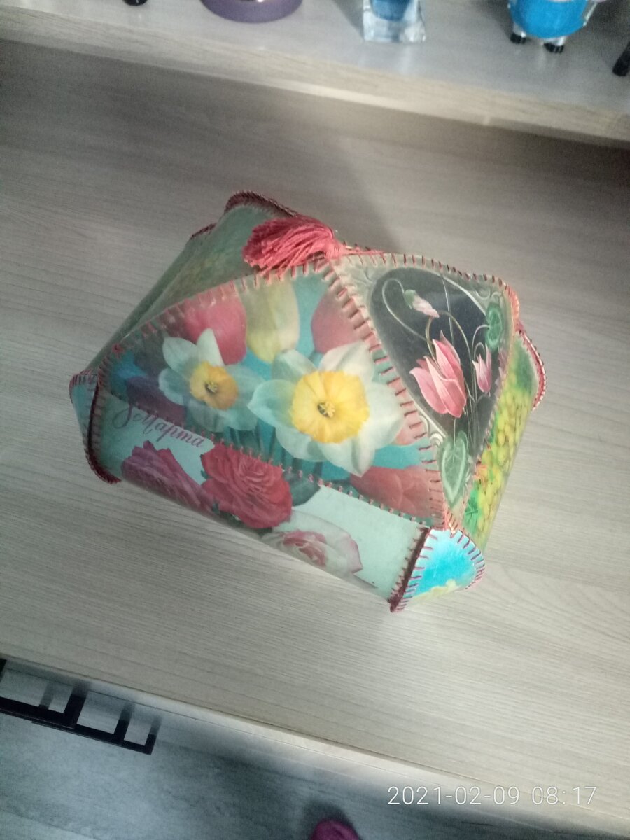 Есть у меня дома одна невероятная шкатулка. Мы такие делали в начальной школе на уроках труда из открыток. Учительница давала выкройки деталей, мы вырезали и сшивали детали. Получалось очень мило. Кто делал такие?