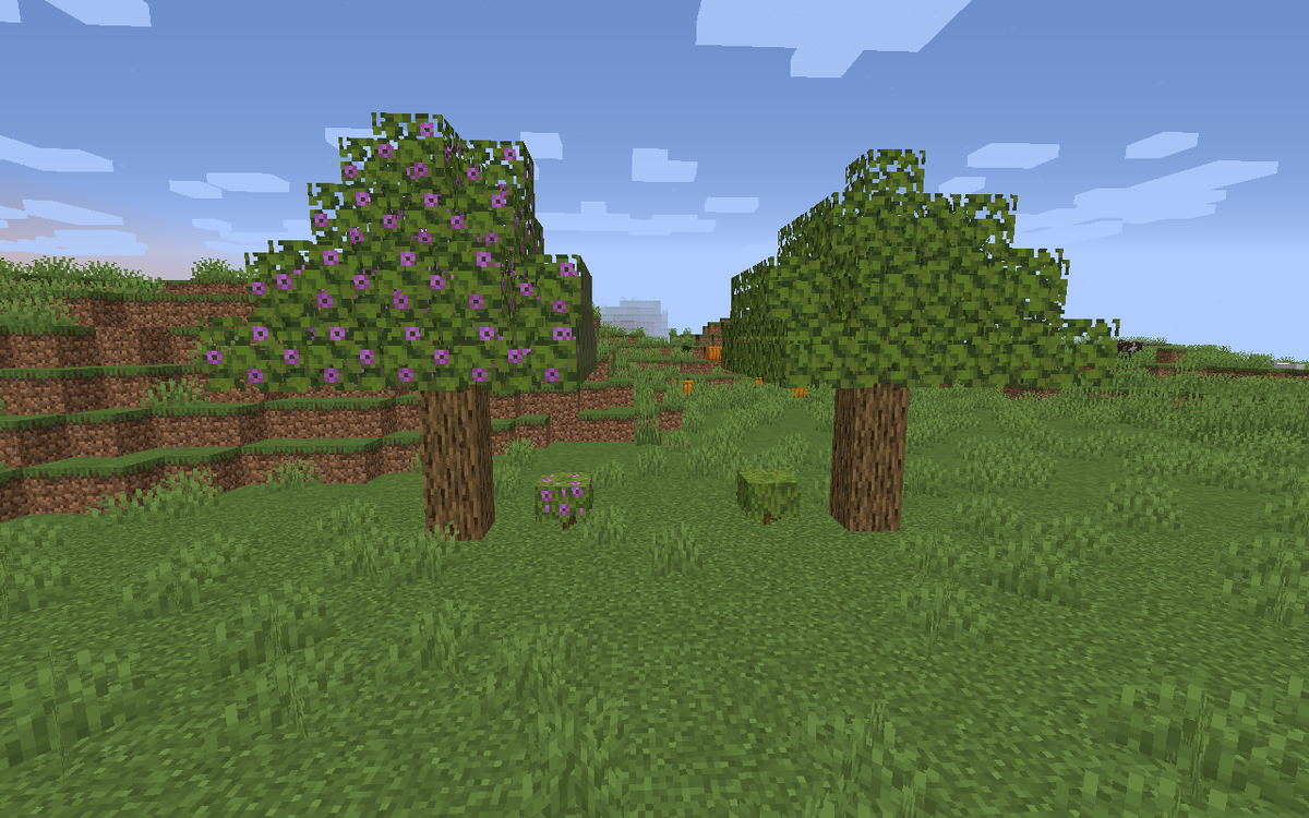 Это новый вид деревьев. На Minecon'е 2020 нам показали новое дерево-азалия. Благодаря его модели я попытался воссоздать что-то похожее. Опорой для этого стал обычный дуб. Генерироваться она по-идеи в дальнейшем должна вроде как над улучшенными пещерами. Есть саженец и листва. Саженец азалии не растёт. Жаль! :( Вот как выглядит мой концепт и само растение.