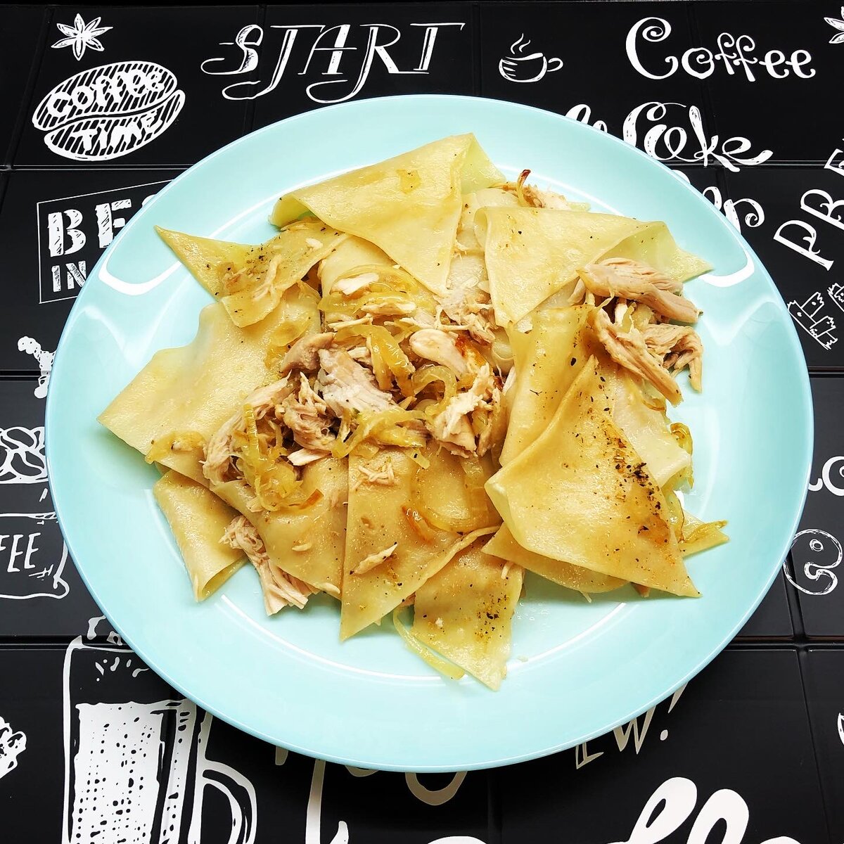 Замешиваем крутое тесто (как на пельмени), в конце обязательно отбить, дать постоять.