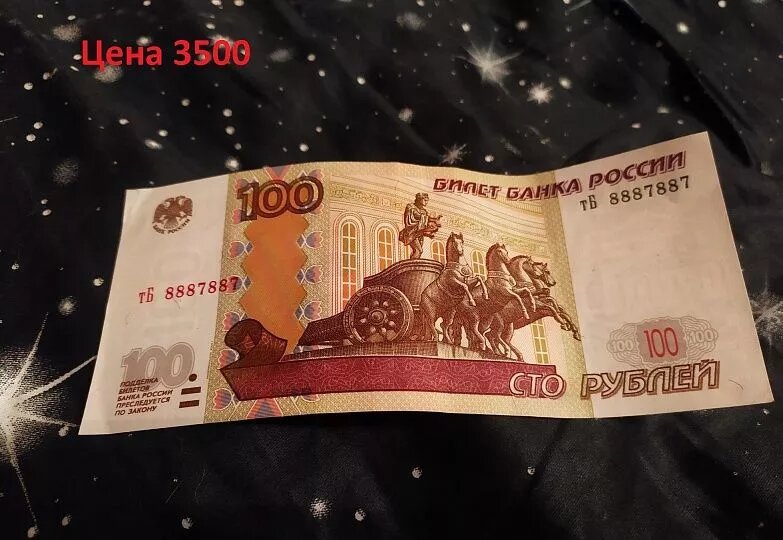 «Продам редкую купюру. С очень красивым номером. В фен-шуй число 8, повторяющееся трижды (три восьмерки), является верным символом беспрерывного денежного потока, благополучия и успеха в бизнесе. Так как форма восьмёрки по форме похожа на знак бесконечности, то она вызывает в подсознании ассоциацию того, что никогда не закончится, а, следовательно, мы можем думать, что деньги никогда у нас не переведутся, будут множиться в разы», — говорится в объявлении. На фото – купюра в 100 рублей, при этом продавец просит за нее 3500. Пятисотку он же продает за 2700, а вот за полтинник просит и вовсе 4500 рублей.