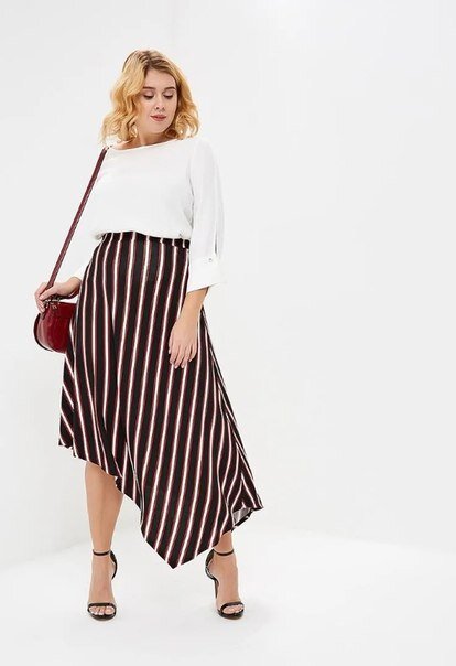 Юбка с вертикальной полоской и высокой талией оптимально сбалансирует фигуру и сделает образ элегантным и нескучным. При походке струящаяся юбка повторяет движения вашего тела и создает легкий воздушный образ. Кстати, стилисты советуют открывать и демонстрировать руки, декольте, ноги — это отвлекает внимание от проблемных зон.