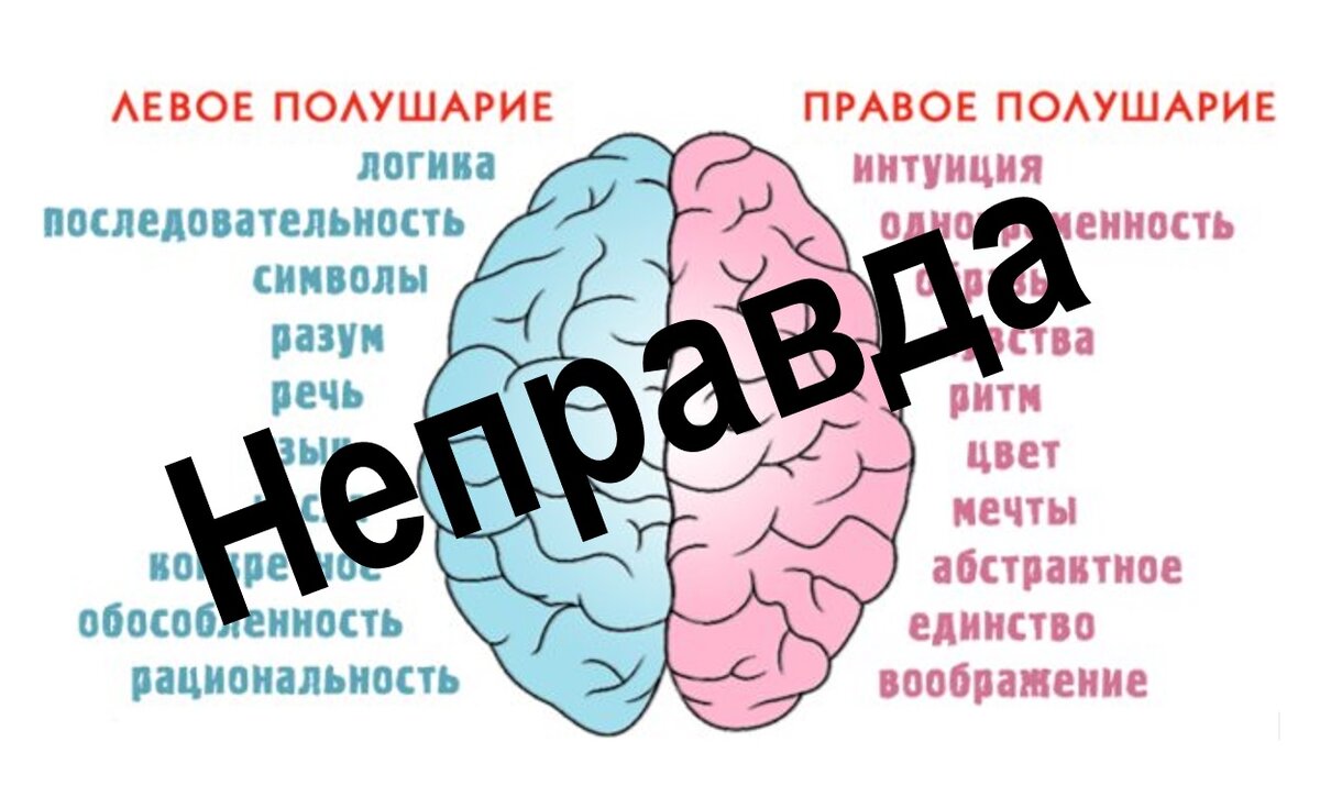 Представление о том, что правое полушарие отвечает за творчество и эмоции, а левое — за логику, не соответствует действительности. Известны случаи, когда в результате травм у человека оставалось одно полушарие, что не мешало ему решать логические задачи и выполнять творческие задания.