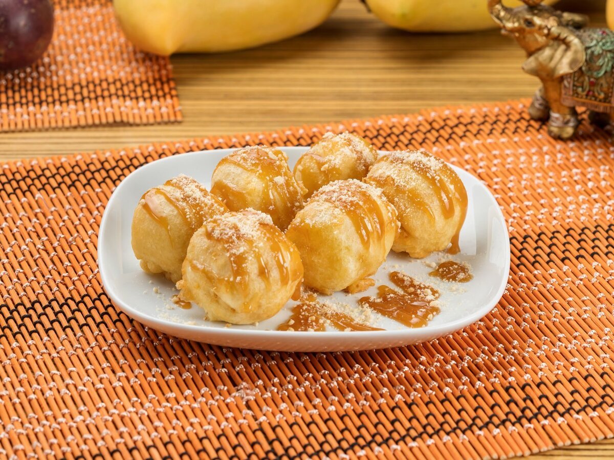 3. Такие мини пончики понравятся особенно детям. Вместо банана можете взять яблоко, грушу или же другие фрукты.