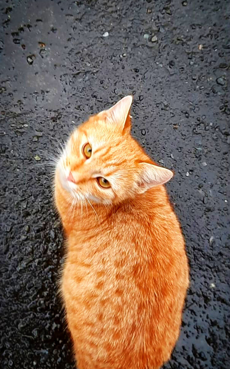 В конце осени в одном из дворов возле мусорки, местная жительница нашла рыжего котенка, который прятался в картонной коробке, набитой ветошью.