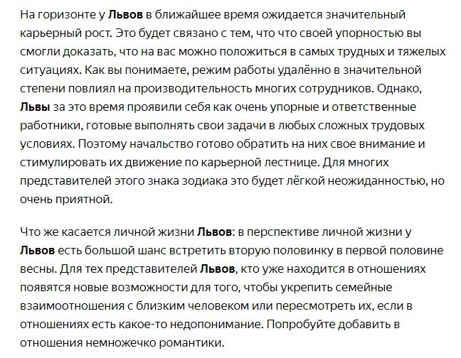 Помните о том, что гороскоп гороскоп рознь. Верить или не верить в его совершение, зависит от вас. Если вы верите в то, что написано в этой статье - то для вас этот прогноз станет в ближайшее время явью. Если же вы отнесетесь к нему с легкой долей скептицизма, то ждать его исполнения и претворения в жизнь не стоит.