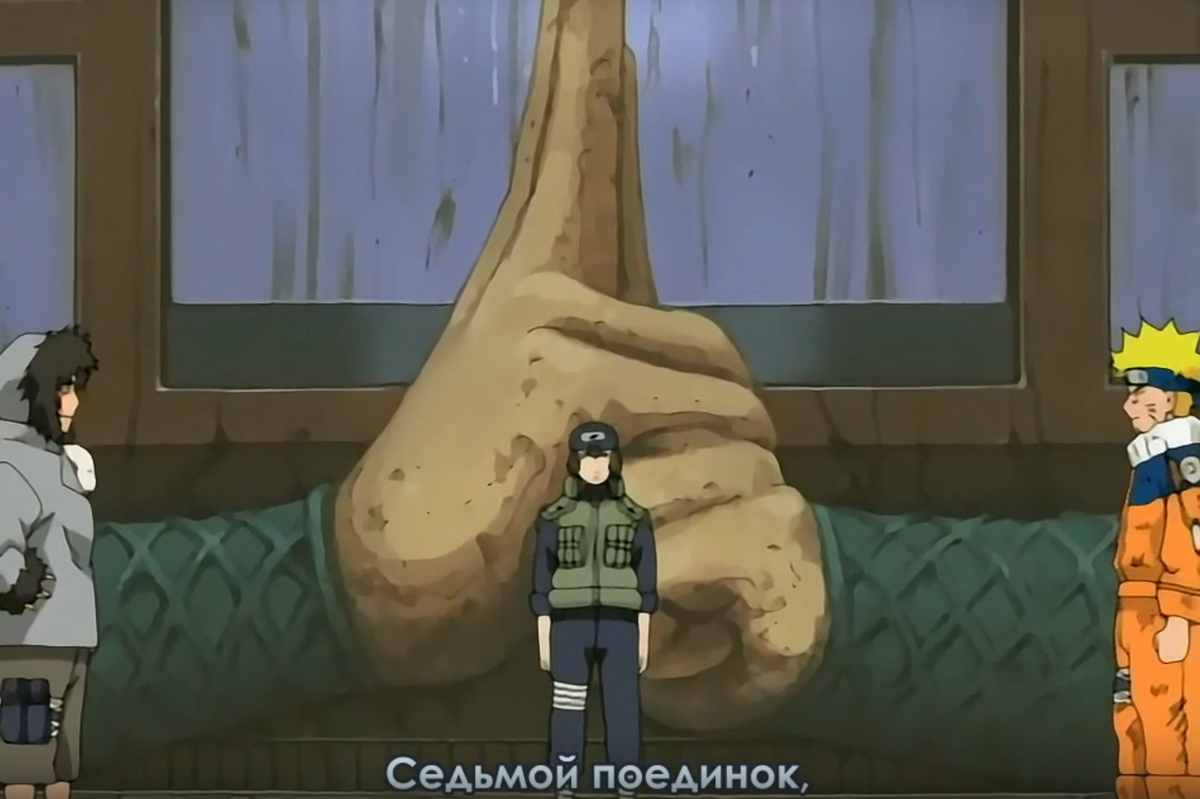 Кстати, теперь это был глупый мув от Наруто. Ну т.е сама задумка то - хороша, но реализовать он мог её эффективнее, возможно, даже нокаутировать Кибу. Достаточно было не грызть рукав, а просто в прыжке принять облик Наруто и прописать апперкот в подбородок. Ну либо даже если вцепиться в рукав, то напасть из этого положения, а не просто хихикать.