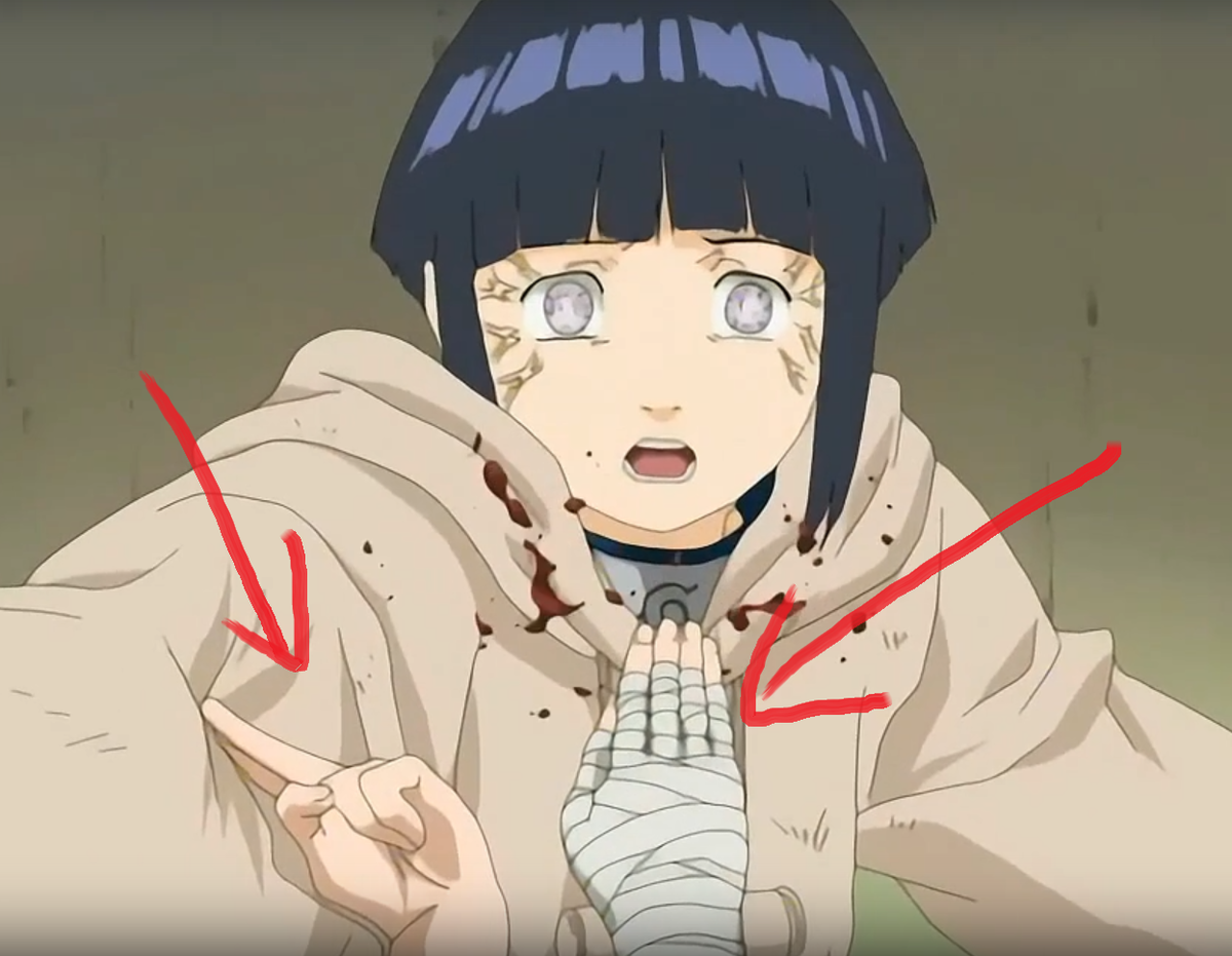 Другой вопрос - почему Хината сразу этого не осознавала? В пылу ли битвы, или просто потому, что, как я уже сказал, в руках только кости да мясо, и она не могла почувствовать каких-то внутренних дискомфортных ощущений, только обычные тычки по рукам, а полностью нарушенный ток чакры смогла осознать только к концу, когда руки целиком были перекрыты? Точного ответа нет.