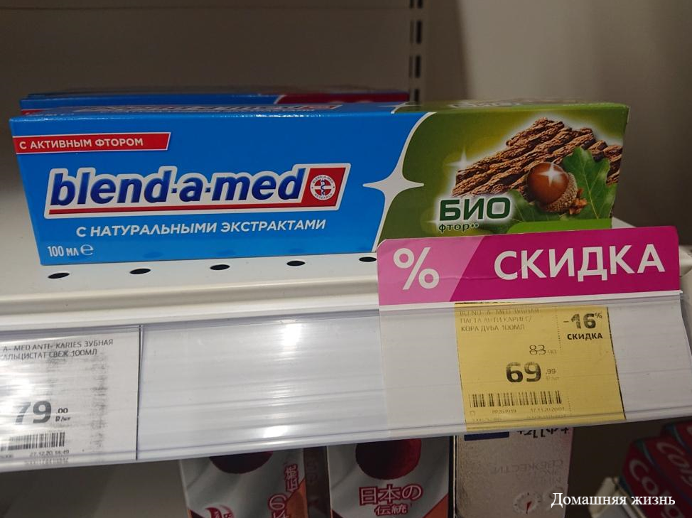 Начала я свой поход с "Магнит косметик". Но там как-то сегодня оказалось совсем скучно, относительно зубных паст. Скидка только на «blend - a - med» серии «БИО» и цена за 100мл. составляет сейчас 69 рублей. Данная акция продлится до 10 февраля, поэтому любителям этого бренда стоит поторопиться за покупкой.