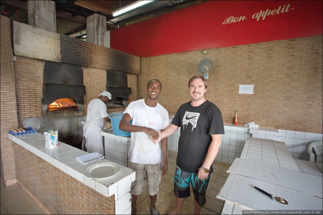 С тех пор, когда я прилетаю в Либревиль - всегда иду за пиццей, одну съедаю в кафе, и еще с собой беру 2-3 пиццы. Ведь она тут настоящая габонская.