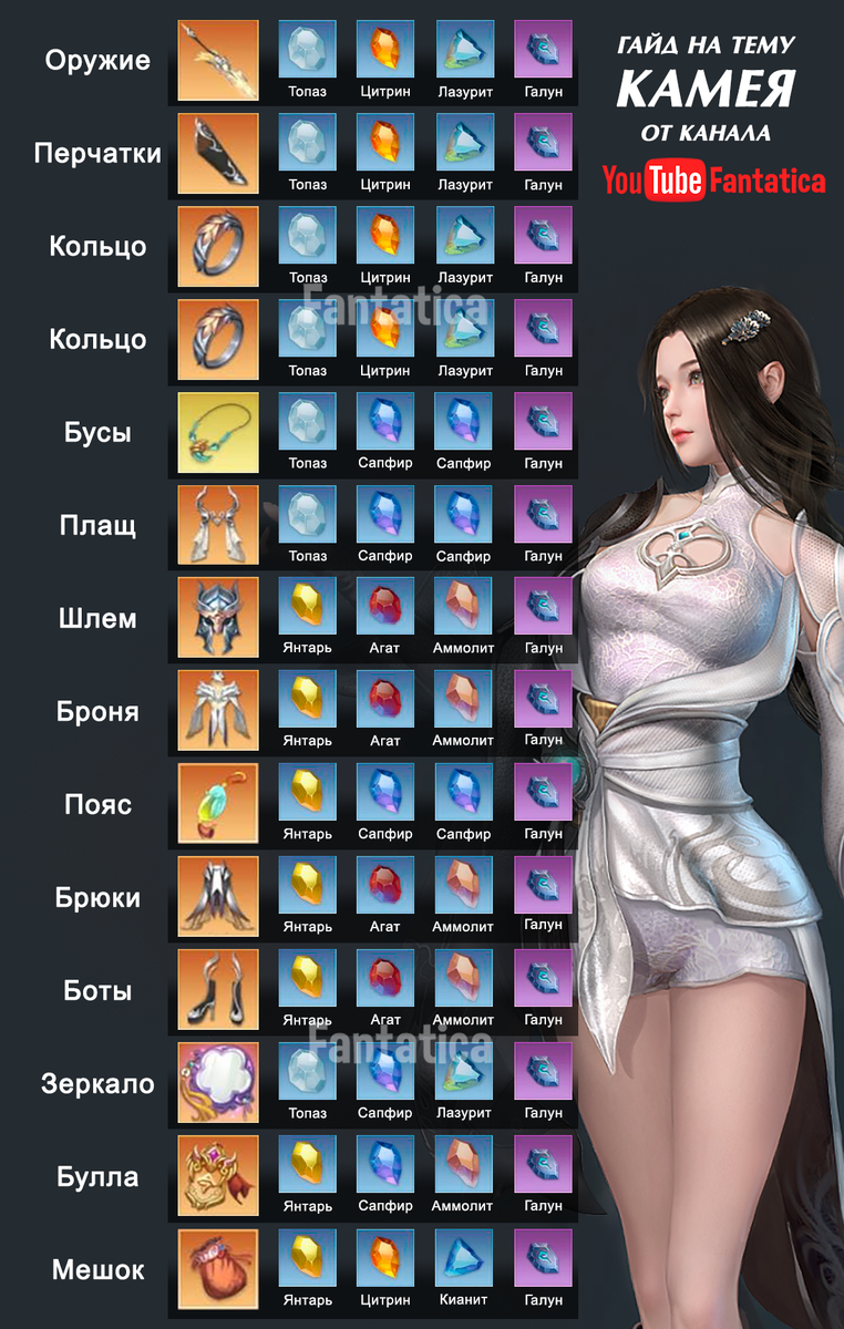 - Топаз (МАТК) – Оружие, Перчатки, Кольцо, Бусы, Плащ, Зеркало;