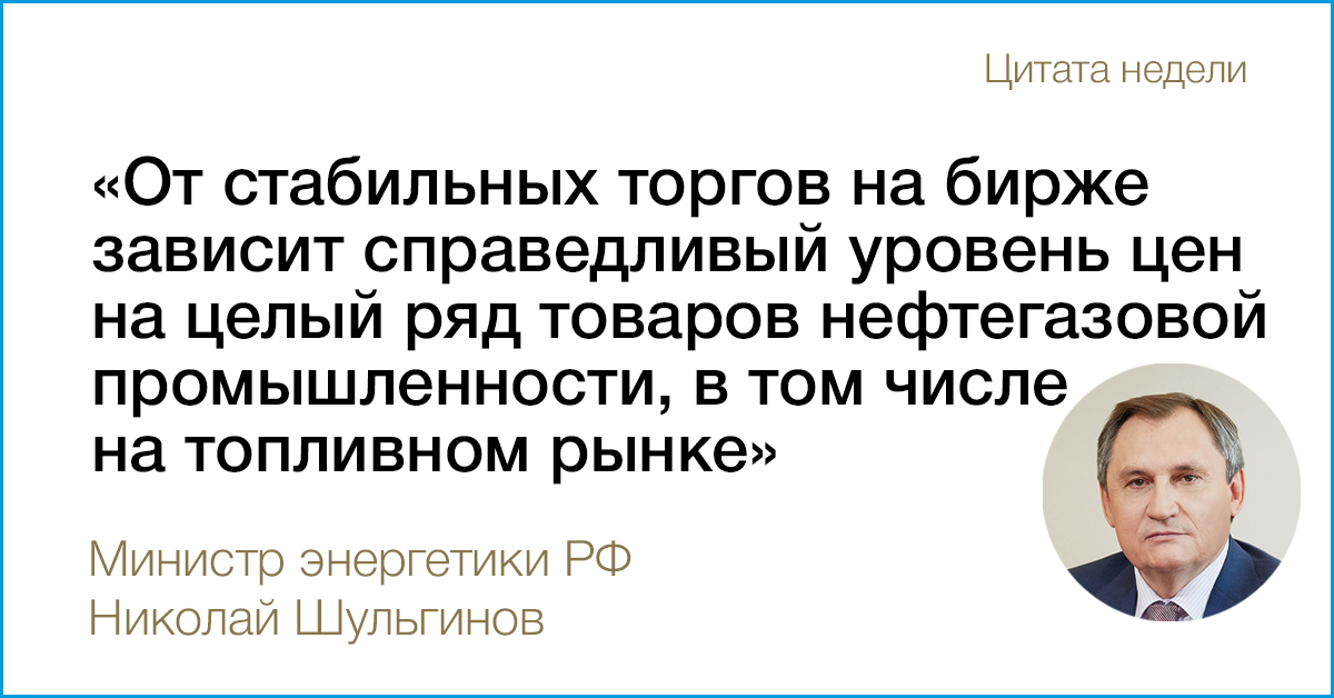 «От стабильных торгов на бирже зависит справедливый уровень цен на целый ряд товаров нефтегазовой промышленности, в том числе на топливном рынке. На сегодня уже успешно ведутся торги нефтепродуктами, природным газом и СУГ, а также нефтью (в том числе экспортной), фьючерсами на нефтепродукты и СУГ, в 2017 году стартовали торги энергетическим углём», – сказал Николай Шульгинов.