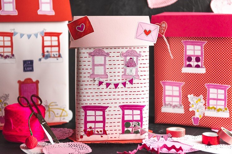 Коробка для валентинок — важная часть праздника! Сегодня мы покажем вам, как сделать классный домик своими руками — в него можно не только складывать валентинки (может в вашей школе проходит конкурс на лучшую коробку?), но и украсить ей праздник.