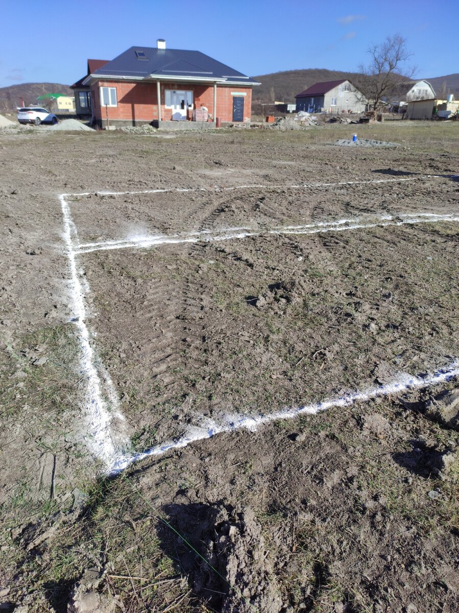 Сегодня с утра мы с ним сделали разметку. С помощью гипсовой штукатурки подготовили разметку к копке.