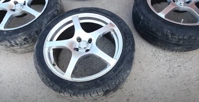 Я решил покрасить свои диски, поэтому сейчас покажу диски в таком состоянии, в каком они были. Отбитая краска везде. Самая большая отбитая часть – это я зацепил бордюром. Теперь купил краску, сейчас буду подготавливать и красить. Купил наждачку: одна – 120, а другая – 240. Потом выбрал более темный цвет. Хочу покрасить в кварц. Также есть обезжириватель, грунтовка и сверху лак. А ещё купил
