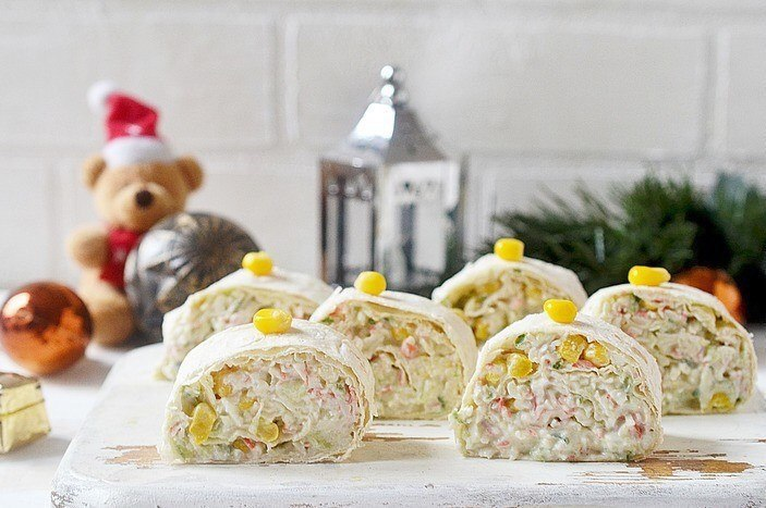 Всем известный салат покажется совсем другим блюдом, если подать его в виде ролов. Порционная подача и знакомый вкус делают его незаменимым для праздничного стола!