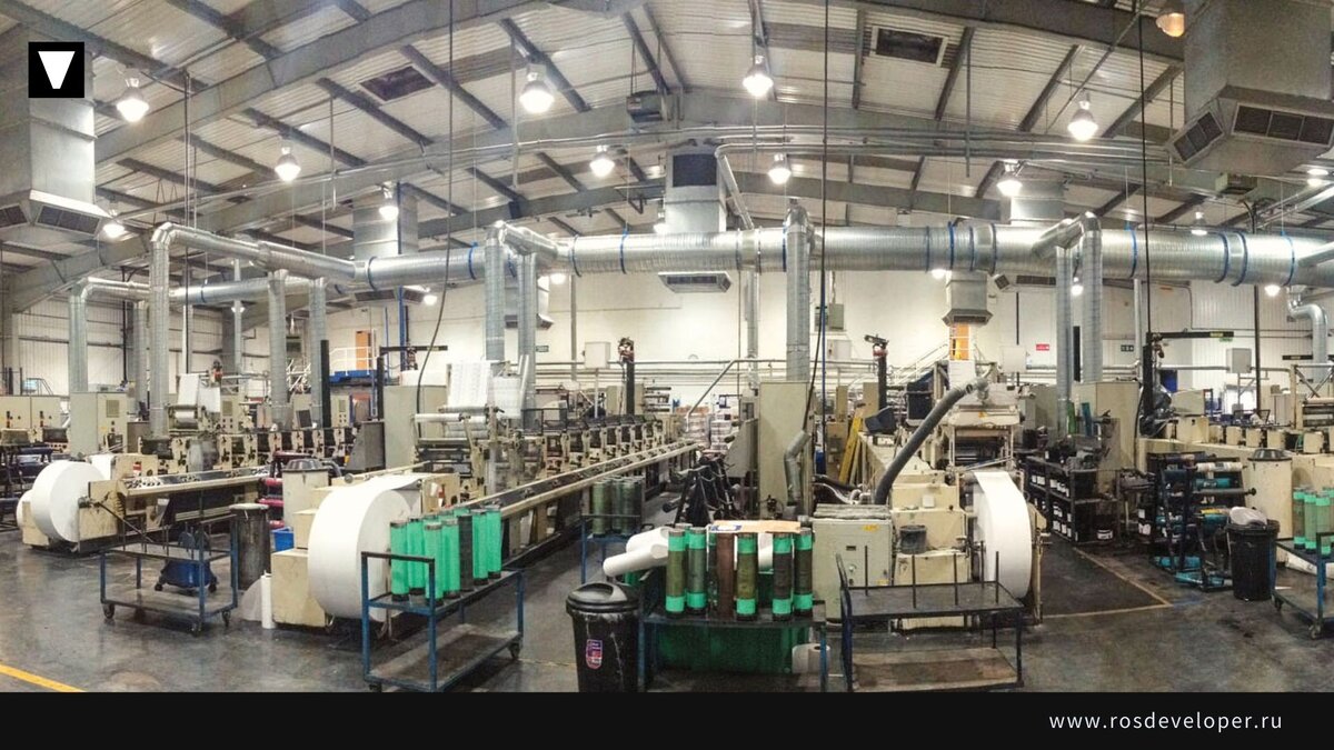 Именно таким образом осуществляется вентиляция цеха. Так как на производствах температура чаще всего повышена и в воздухе много вредных веществ, естественная вентиляция работает наиболее корректно. Обмен воздухом происходит вследствие разности температур внизу и вверху. За счет этого создается давление между трубами и «грязный» воздух просто выталкивается.
