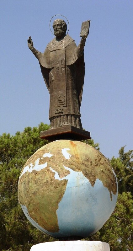 Правда скульптуру Николая Чудотворца переместили к базилике свт. Николая, отняв земной шар. Там фигура стоит и по сей день.