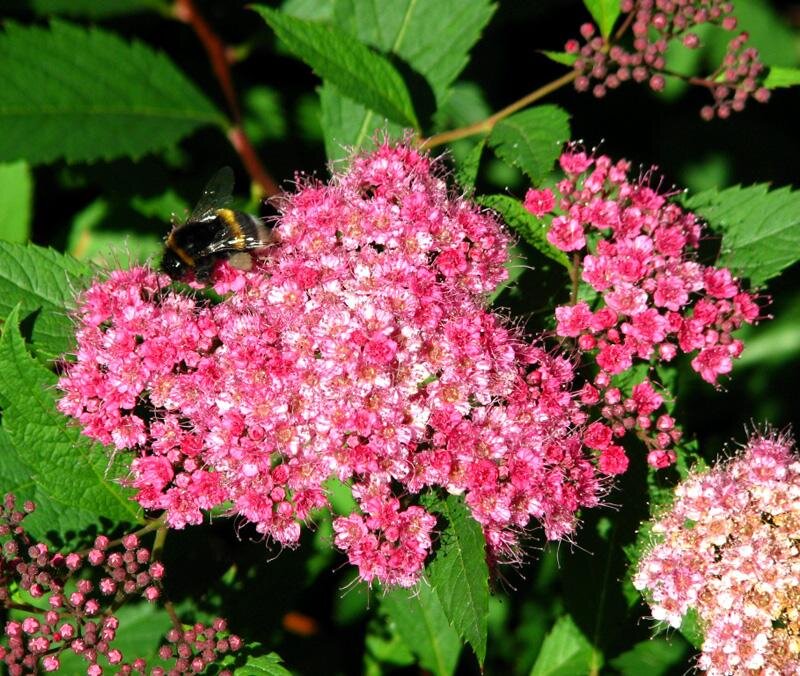 На спирее в компостной почвосмеси цветение продолжалось все лето и осень.