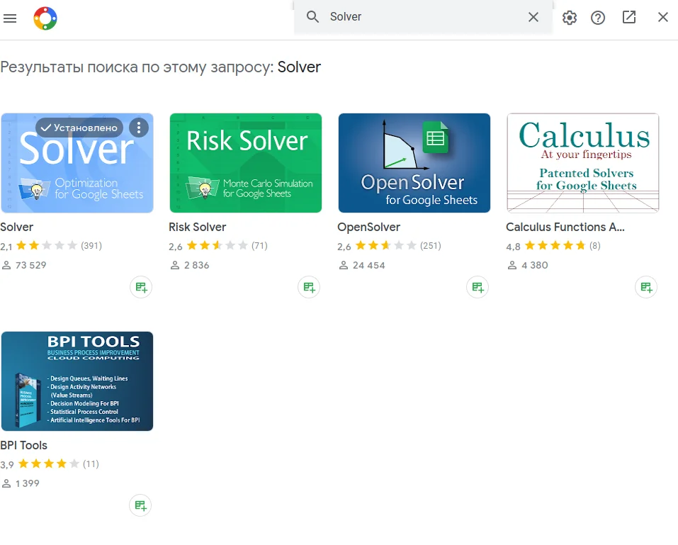 Далее нажимаем Solve, получаем решение (если в некоторых переменных дробная часть отделена точкой, потребуется заменить ее на запятую):