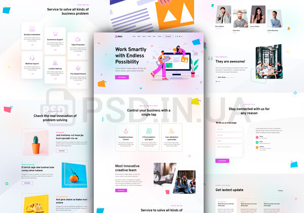 Свежий, светлый макет сайта landing page для стартапа или агентства. Выполнен в хорошо сбалансированной цветовой гамме, имеет довольно приятный интерфейс.