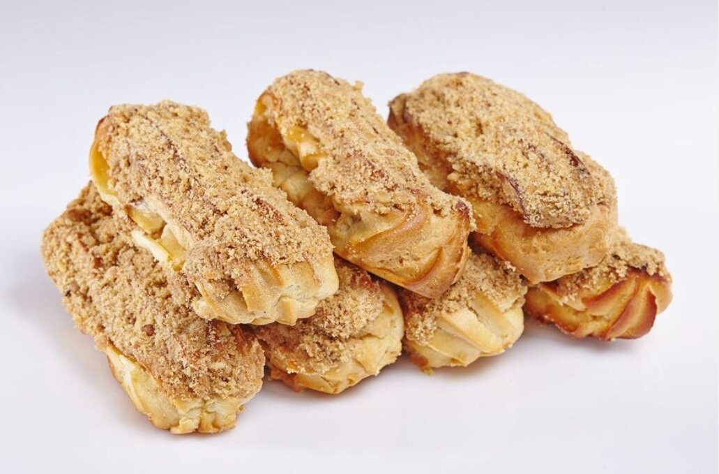 - Готовые эклеры остудить на решетке и наполнить заварным кремом с помощью кондитерского шприца или ложкой.