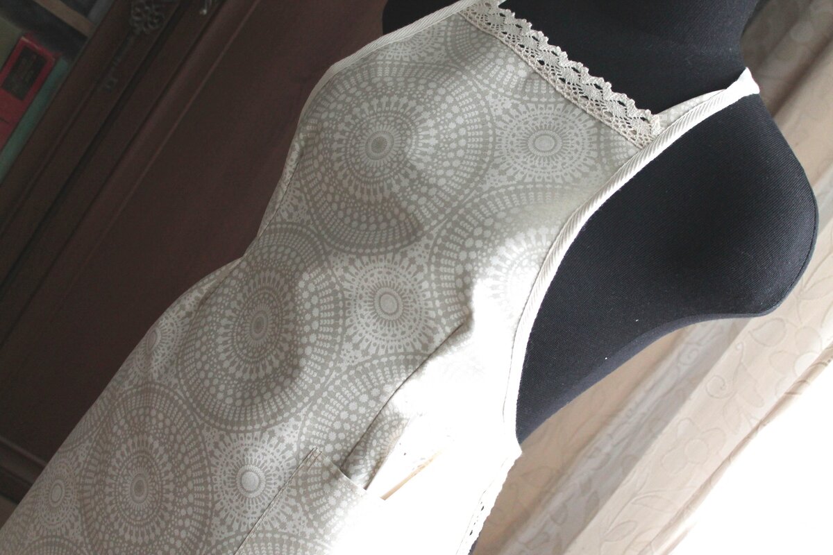Фартук сшила по классической выкройке, но сделала вытачки в районе талии - так он прекрасно сел по фигуре.