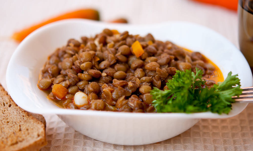 1. Зёрна тщательно моются под холодной водой. На 1 чашку с чечевицей вам необходимо взять 2 стакана воды. Вода заливается в кастрюлю и ставится на плиту, доводится до кипения. Зёрна высыпаются в уже кипящую воду и снова доводятся до кипения.
