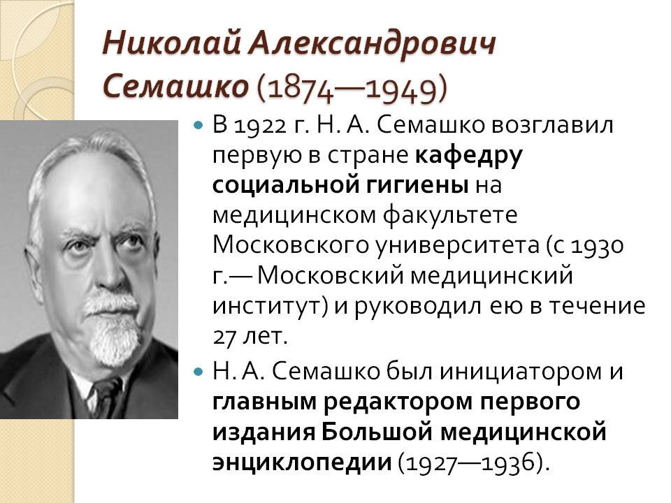 Министр здравоохранения СССР Б.В. Петровский: " Николаю Александровичу Семашко выпала очень трудная задача становления, организации, начало организации нашего Советского здравоохранения. В 1918 году указом подписанным В.И. Лениным, Семашко назначается первым Народным Комиссаром Здравоохранения Российской Федерации. Стало первым Министерством Здравоохранения в мире. Гражданская война, разруха, отсутствие по существу всякой медицинской помощи на окраинах нашей страны, да и в центре. В основном платная медицинская помощь, непонимание профилактики со стороны врачебных масс и врачебной общественности нашей страны, все это пришлось ему преодолевать. И под руководством партии, организовывать новую службу, систему социалистического здравоохранения".